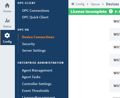 First, add the device in the Ignition Gateway Configuration > OPC UA: Device Connections page: