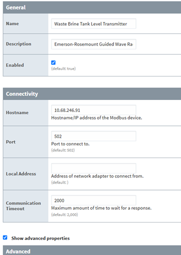 Setting up the Ignition device connection to our Emerson Rosemount Level transmitter using the Modbus TCP converter was a breeze. Emerson technical support provided quick responses to any questions about Modbus addressing as we set up tags in Ignition to view and collect the datapoints.