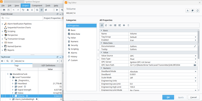 In Ignition Designer, add tags to the tag browser using these settings: